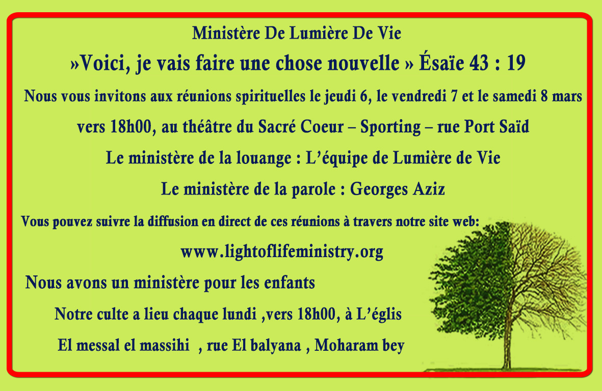 Notre Culte a lieu chaque Lundi à 18.00hr - Réunion de priére a lieu chaque Vendredi à 11.00hr